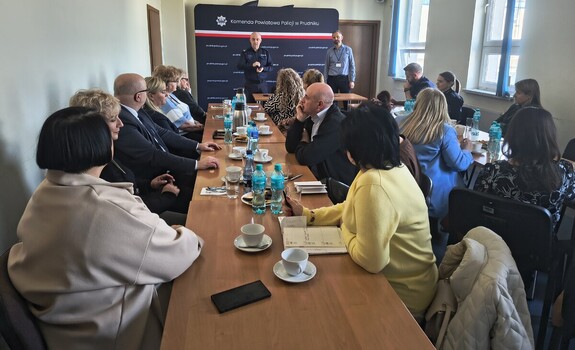 W siedzibie prudnickiej Policji odbyło się spotkanie Komendanta Powiatowego Policji podinsp. Pawła Kołka z dyrektorami szkół podstawowych z terenu powiatu prudnickiego. Celem narady było omówienie bieżących zagrożeń dotyczących bezpieczeństwa dzieci i młodzieży oraz wypracowanie wspólnych działań profilaktycznych. W spotkaniu uczestniczył również I Zastępca Komendanta Powiatowego Policji w Prudniku podinsp. Ryszard Antoszczyszy.