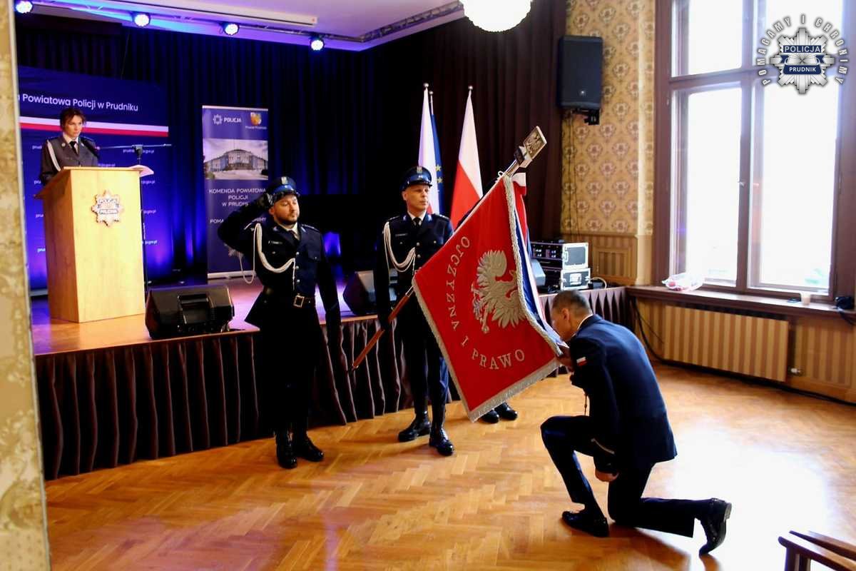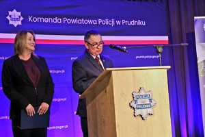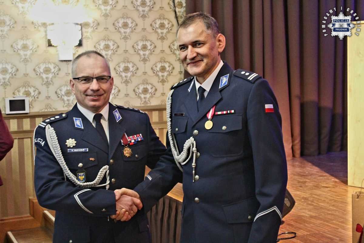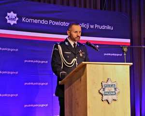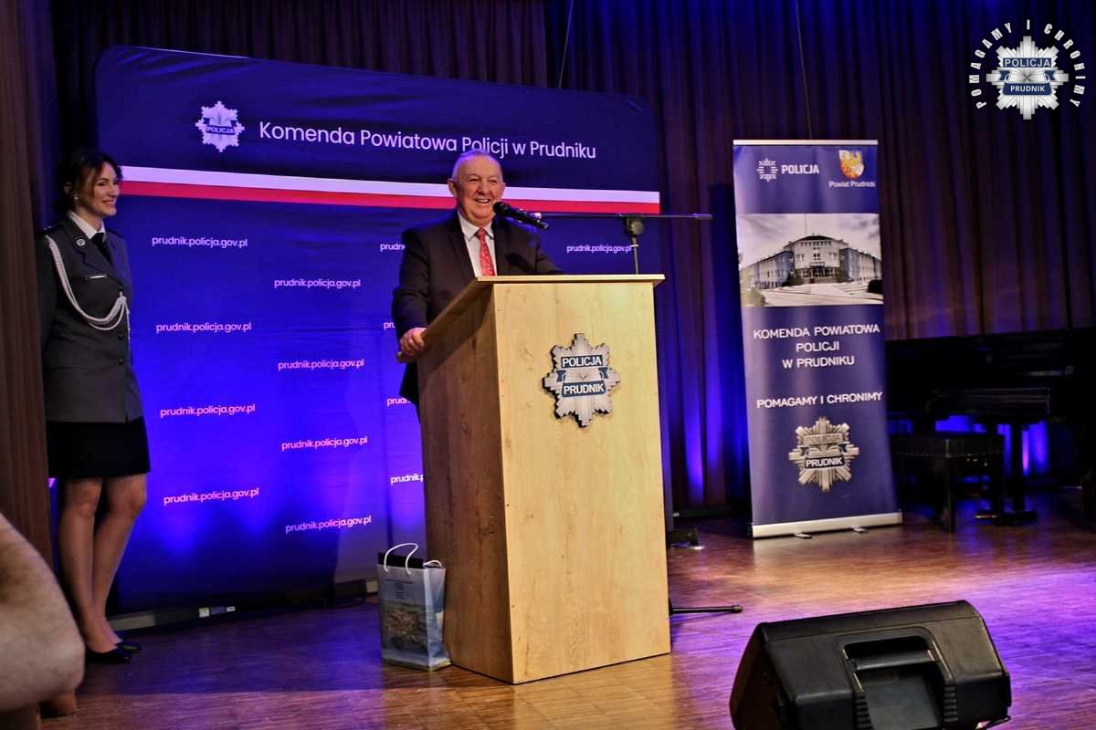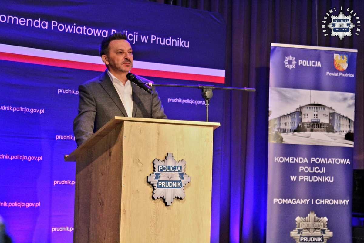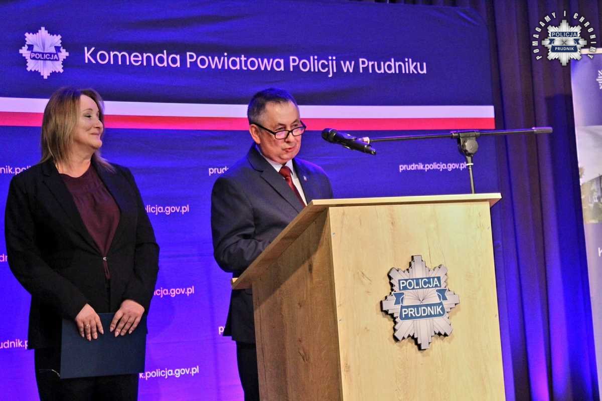 W imieniu Komendanta Wojewódzkiego Policji w Opolu insp. Magdaleny Nguyen-Fudali,  insp. Krzysztof Buchała podziękował Komendantowi prudnickiej jednostki za dotychczasową służbę oraz zaangażowanie .