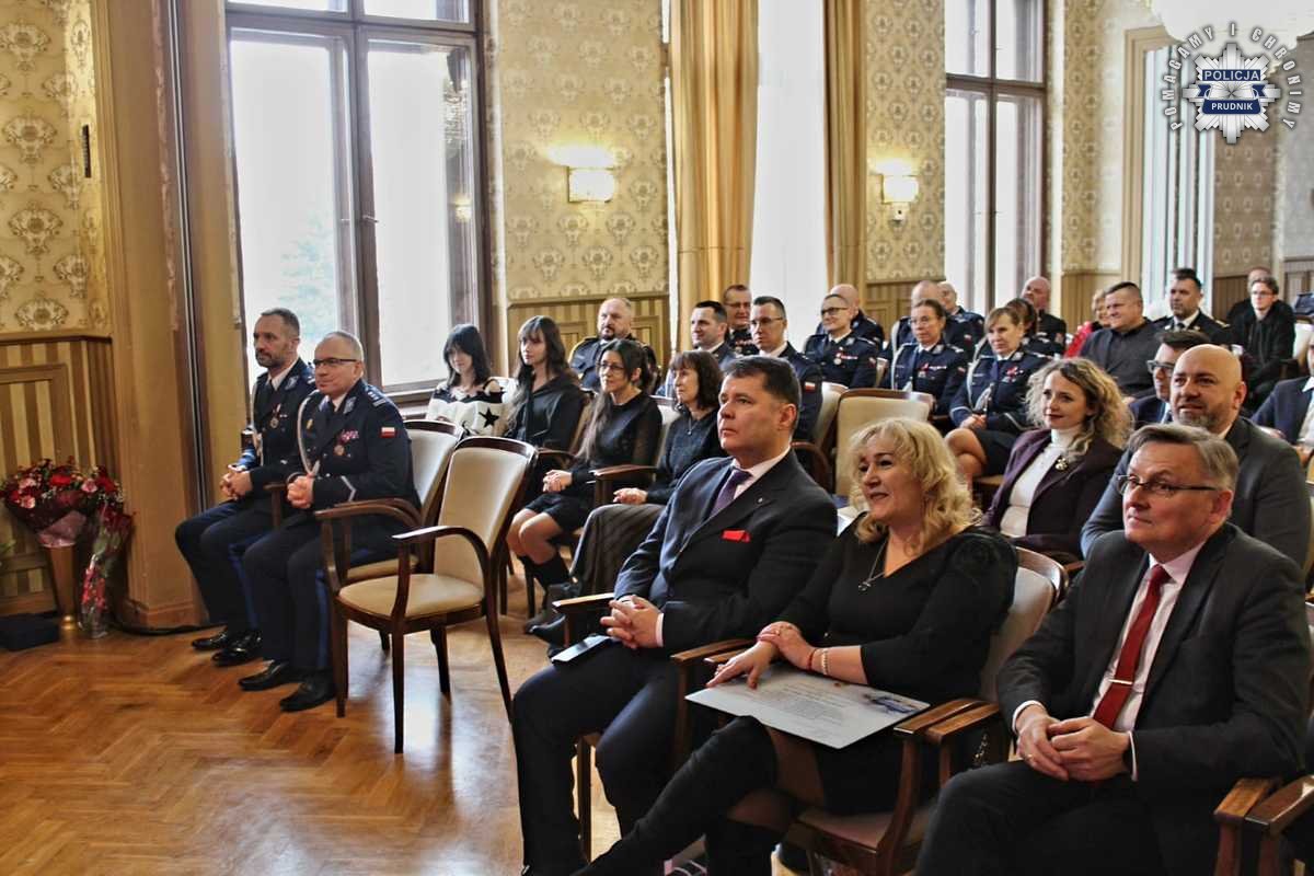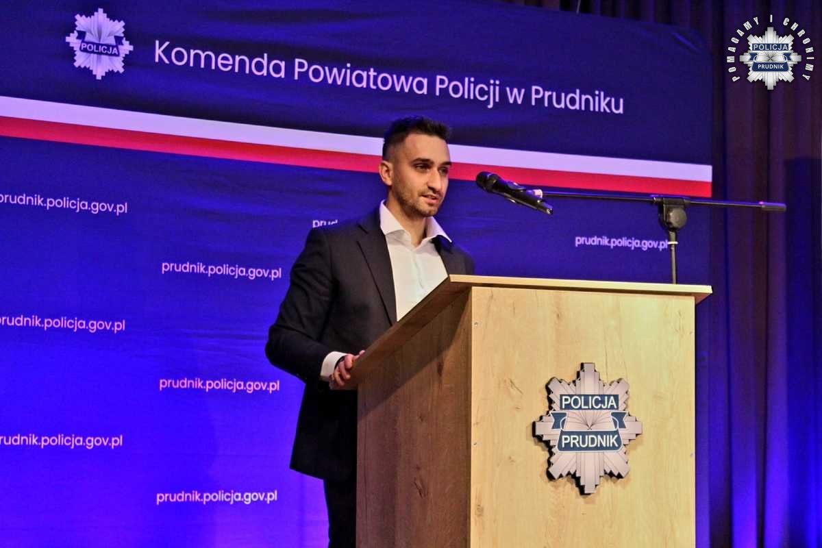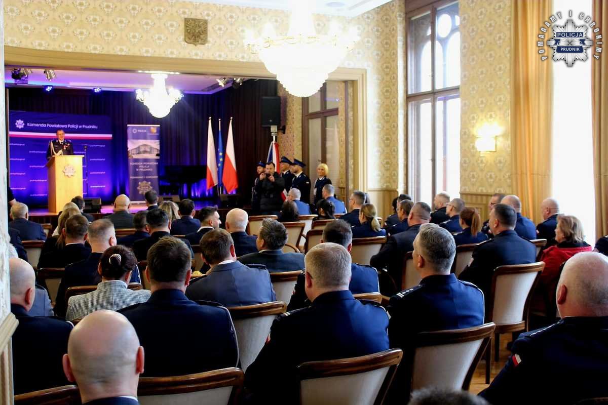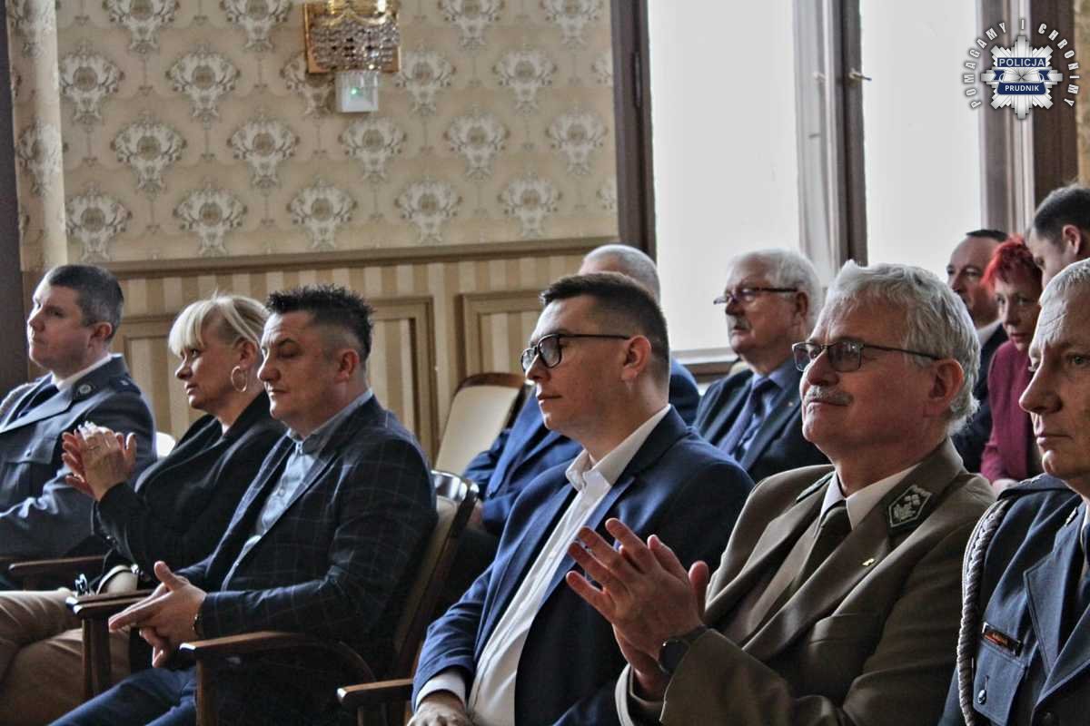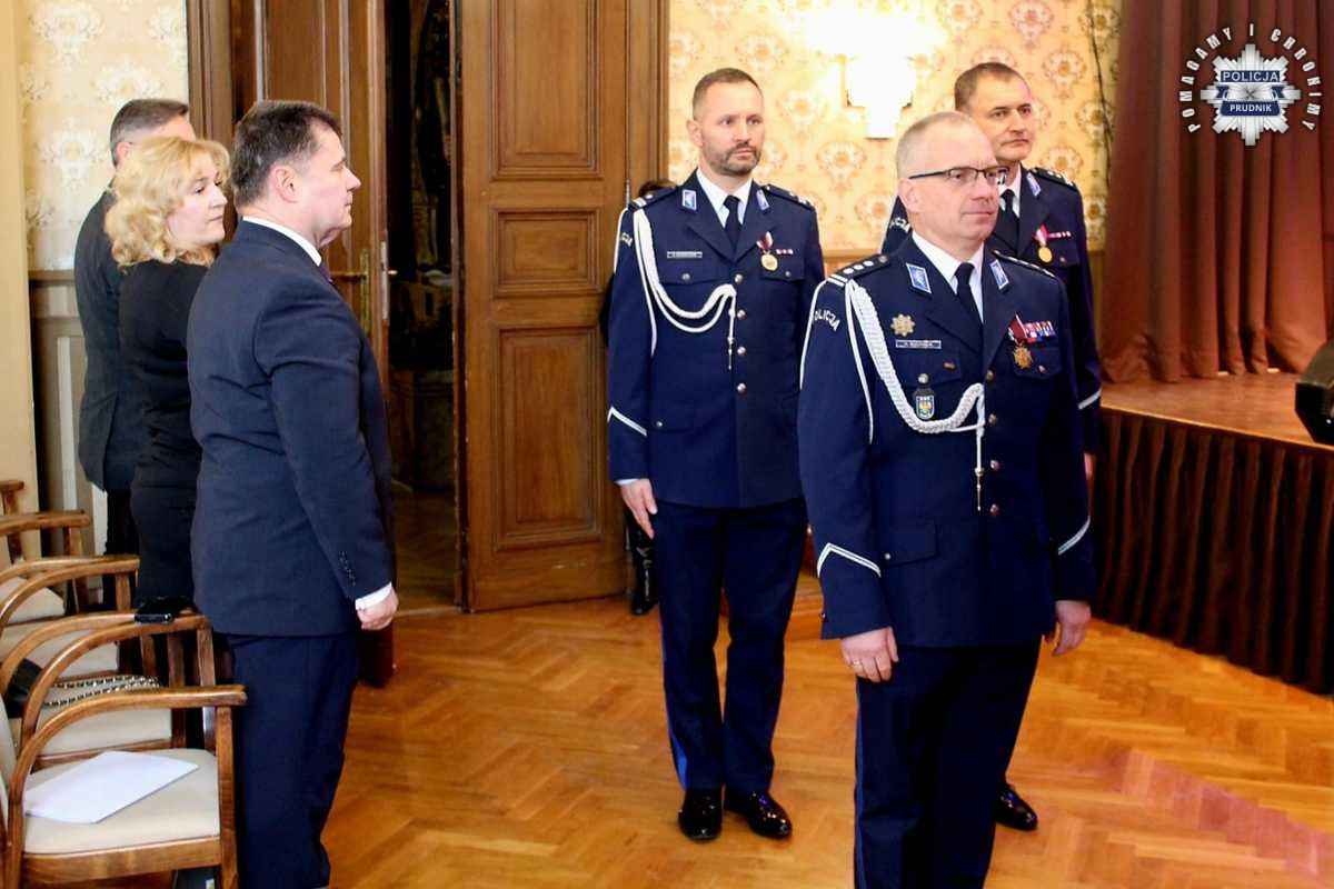 W imieniu Komendanta Wojewódzkiego Policji w Opolu insp. Magdaleny Nguyen-Fudali,  insp. Krzysztof Buchała podziękował Komendantowi prudnickiej jednostki za dotychczasową służbę oraz zaangażowanie .
