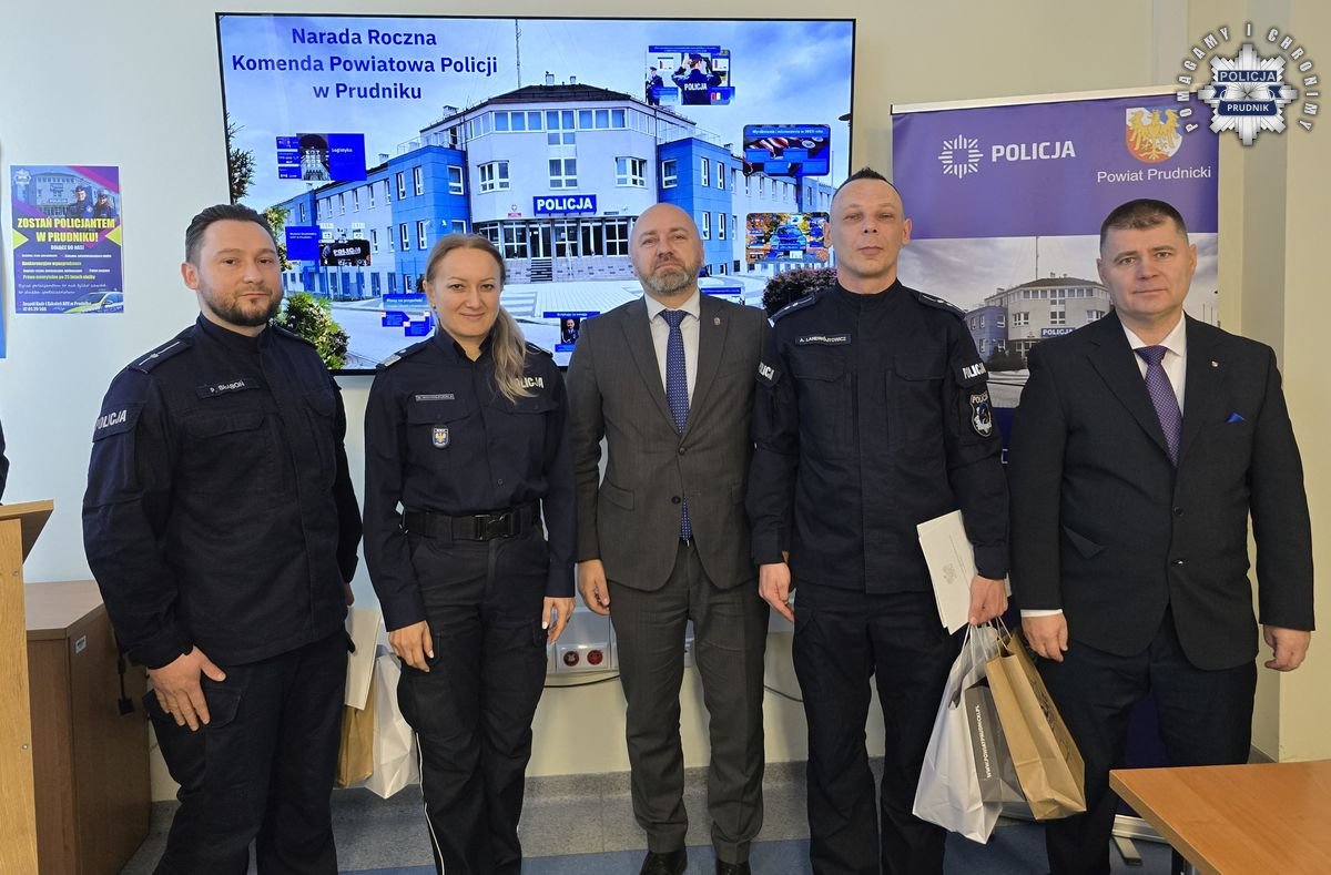 Odprawa roczna w Komendzie Powiatowej Policji w Prudniku – podsumowanie roku i wyróżnienie postaw godnych naśladowania
