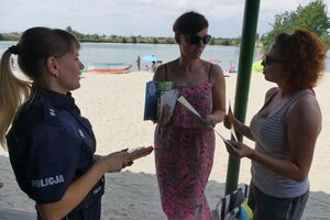 Policjanci, strażacy oraz przedstawiciel sanepidu przeprowadzili spotkanie profilaktyczne na kąpielisku w Dębinie. Podczas rozmów z wypoczywającymi tam osobami funkcjonariusze zwrócili szczególną uwagę na bezpieczeństwo podczas wypoczynku nad wodą. Pokazali także jak udzielać pierwszej pomocy. Akcję honorowym patronatem objęło Ministerstwo Spraw Wewnętrznych i Administracji.
