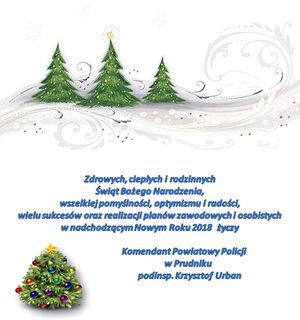 Świąteczne i Noworoczne życzenia Komendanta Powiatowego Policji w Prudniku